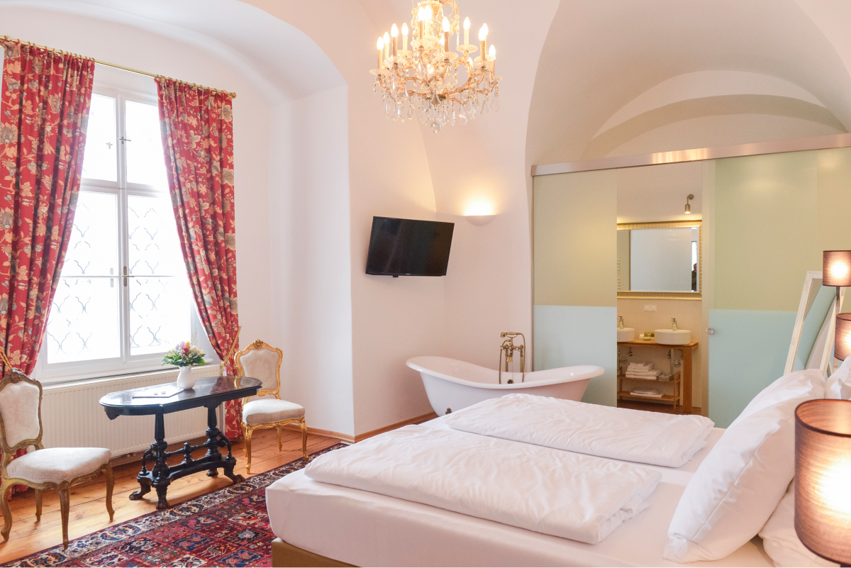 Unsere Luxus-Zimmer tragen die Namen berühmter Adeliger aus der Malteser Ordenskommende wie „Graf von Herberstein“, „Graf von Hardegg“ oder „Graf von Schlik“. Sie bieten auf bis zu 39 m² historisches Flair. Ausgesuchtes Mobiliar und die Liebe zum Detail runden den einzigartigen Charakter ab.