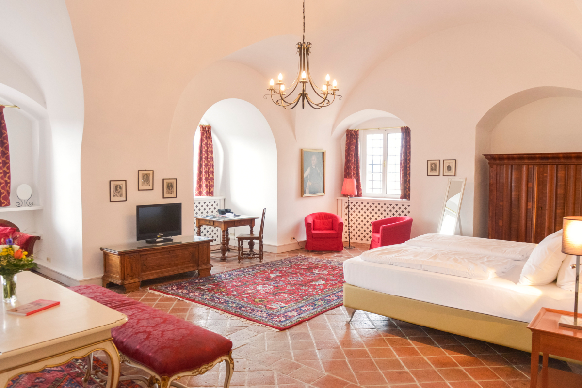 Die Namen ehrwürdiger Malteser Ritter schmücken die Luxus Suiten. Die teilweise getrennten Wohn- und Schlafbereiche versprechen ein besonderes Wohngefühl in historischer Atmosphäre.