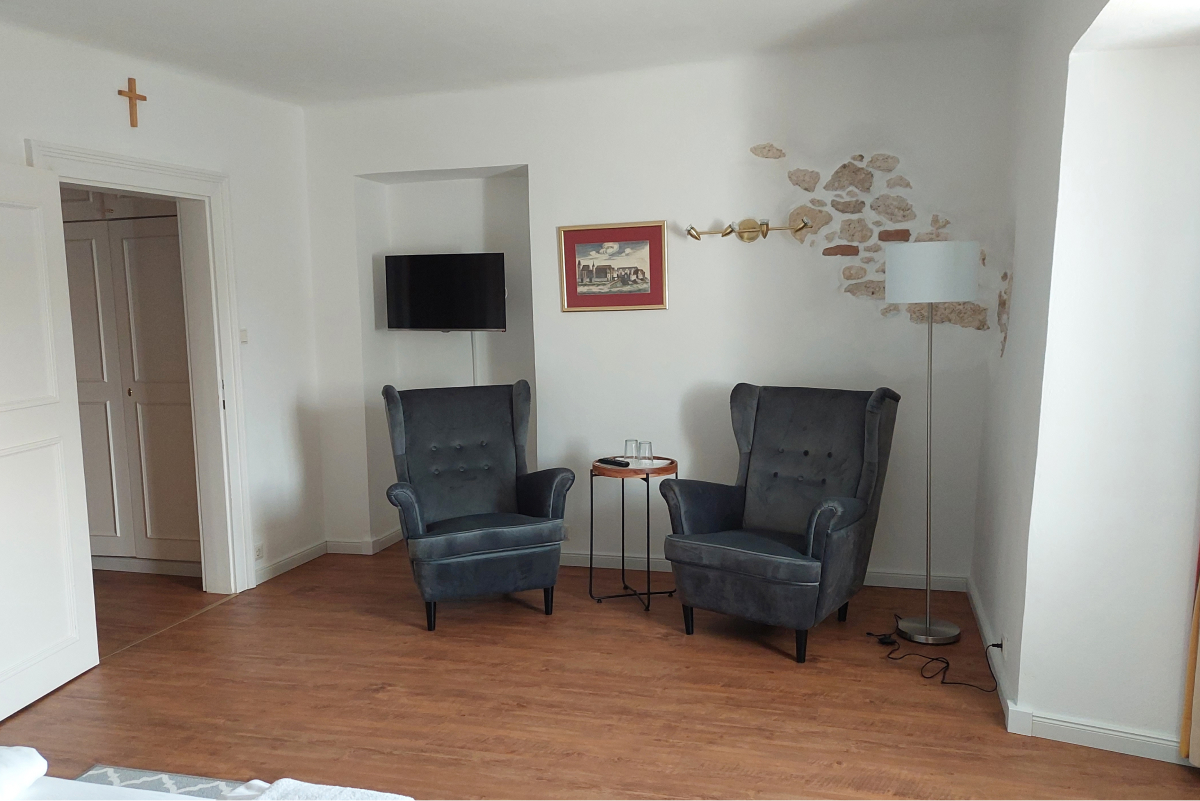 Vier unserer Superior Zimmer befinden sich im aufwendig restaurierten Pfarrhof, der in der zweiten Hälfte des 16. Jahrhunderts, am Fuße des Schlosses, errichtet wurde. Die behaglichen, neu renovierten Zimmer garantieren einen gemütlichen und entspannenden Aufenthalt.