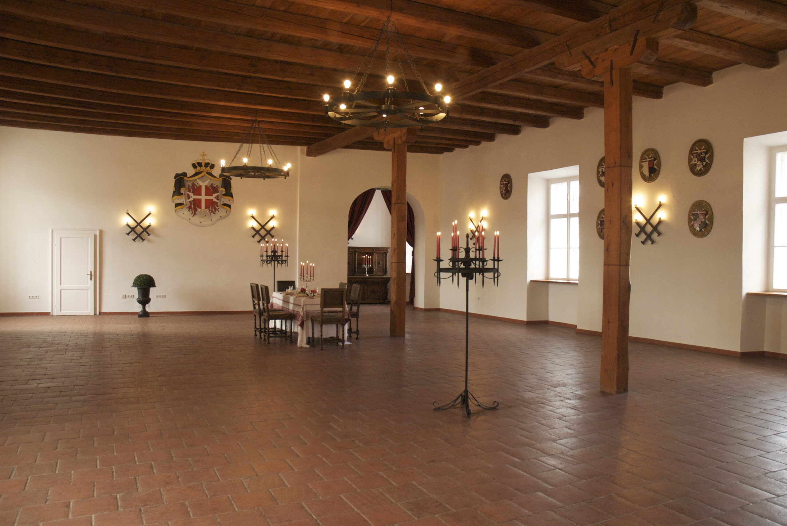 - Wappensaal: bis 230 Personen, mit Bühne und Blick auf Schlosshof und Weinberge